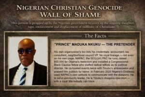 These are the people who plan to stand before the US Congress on March 26 and lie on behalf of the corrupt Tinubu regime and APC party — to cover up the ongoing genocide of Christians, and ensure the US does nothing to stop it. Make them famous.